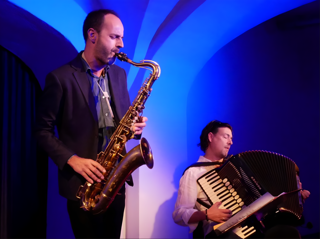 Alpenmusik, Balkan, Jazz und Tango. Musette, Klassik, Avantgarde. “Dans la Suisse Orientale” lebend, schlagen ihre Herzen für die Musik Europas. Musik aus dem Balkan und Appenzell. Aus Paris und Madrid. Vom Mittelmeer und der Nordsee. Und gelegentlich auch aus New York und Chicago. Goran Kovacevic und Peter Lenzin schaffen das Kunststück der Genre-Verschmelzung so mühelos, wie man sich Europa im 21. Jahrhundert wünschen würde: als grenzenlose Einheit voller Respekt für die Vielfalt der Kulturen. Ihre Konzerte geraten zu explosiven Höhenflügen voller Rhythmus, Leidenschaft und Melodie!